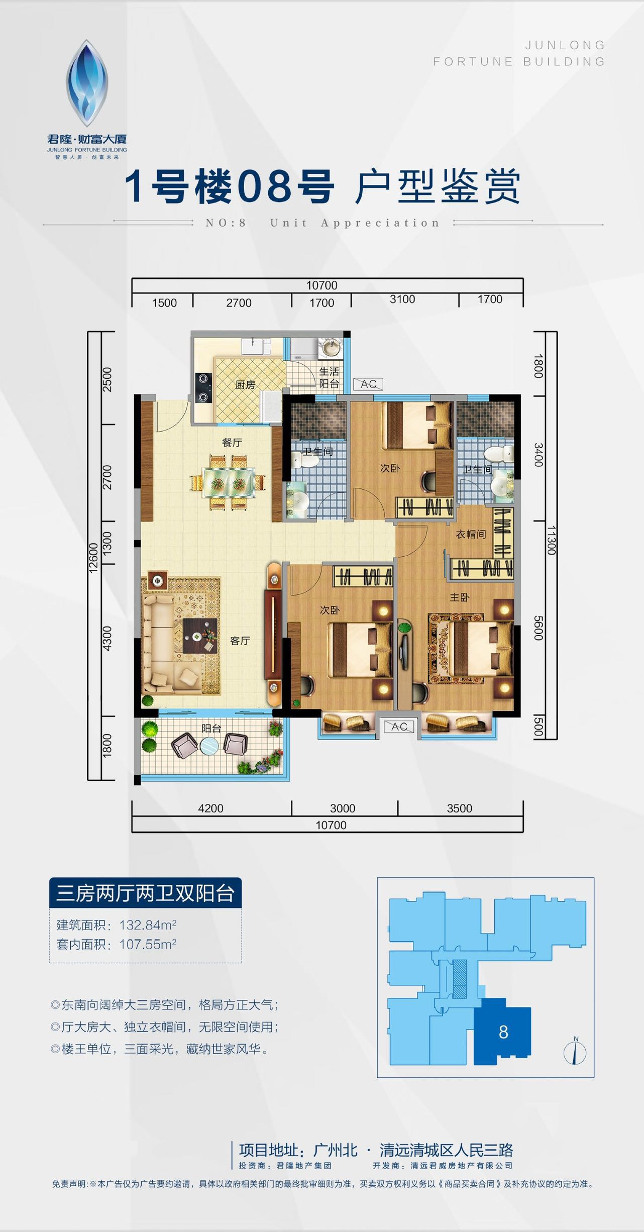 君隆财富大厦3室2厅1厨2卫 总价待定